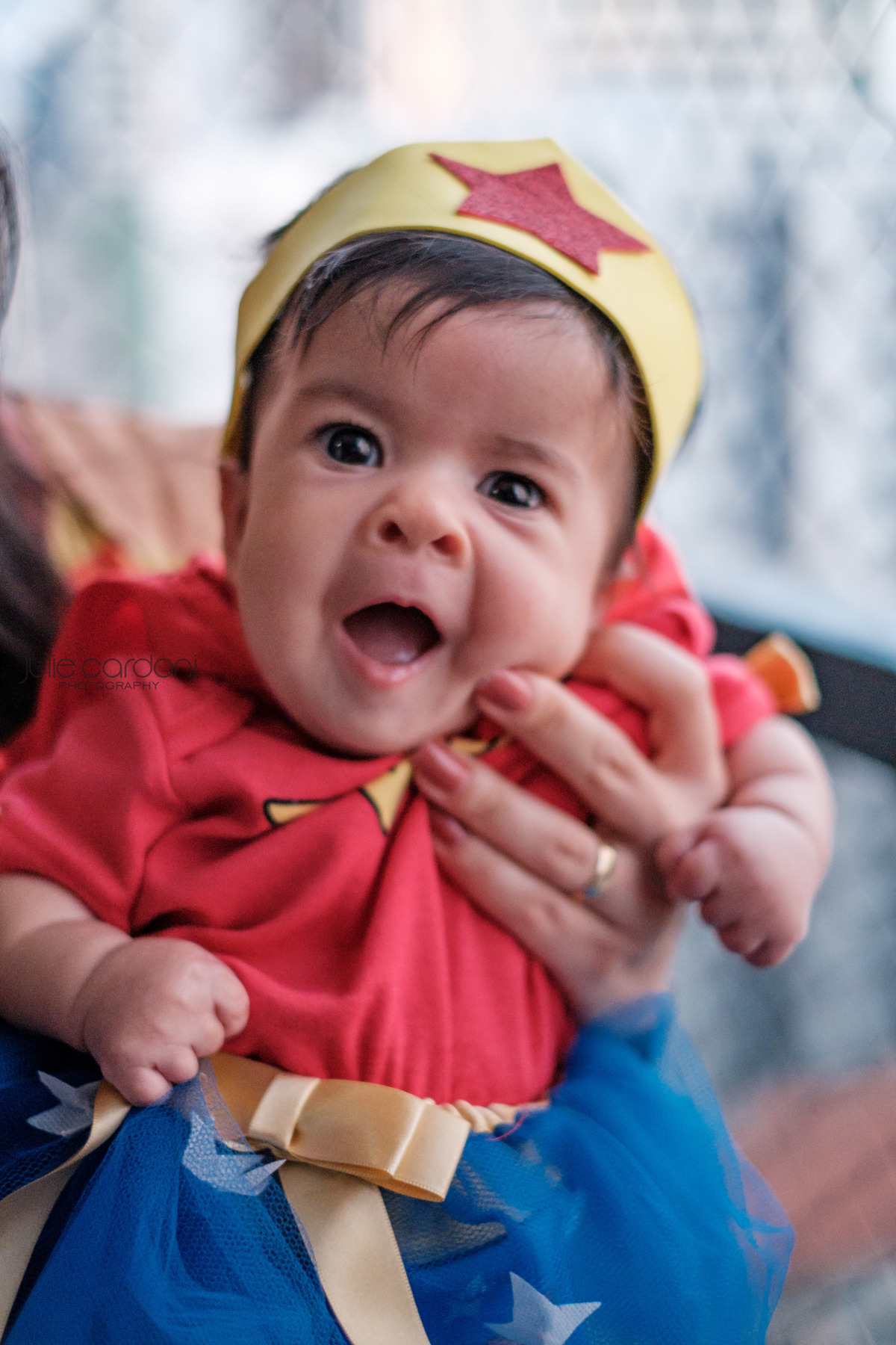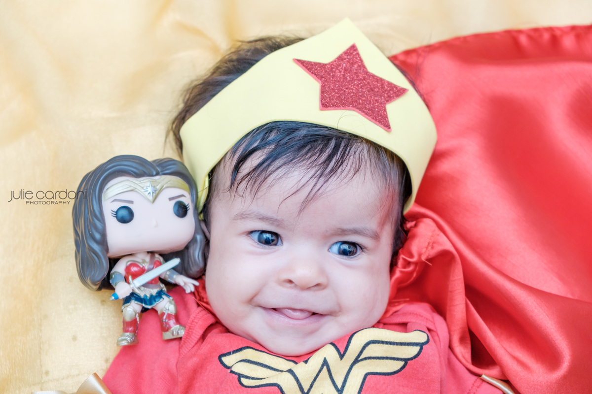 No dia 23 de setembro foi dia de fazer o registro do 4º mês da Luíza, com direito a tema que eu amo, da mulher maravilha. Sério, zero estruturas pra esse bebê.